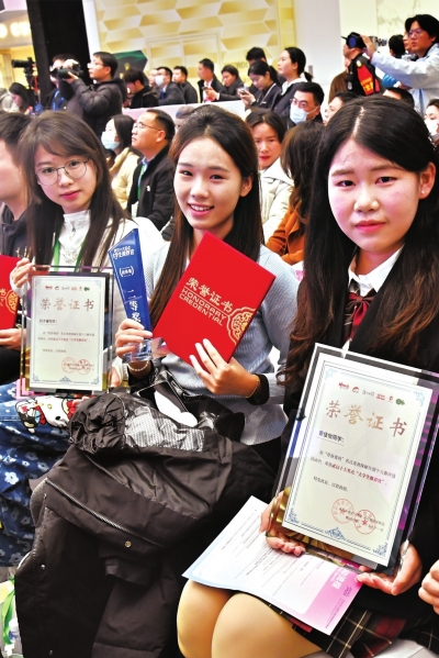 武汉十大名点“大学生推荐官”的高校个人和团体代表在2025武汉国际消费季暨跨年消费季启动仪式上。