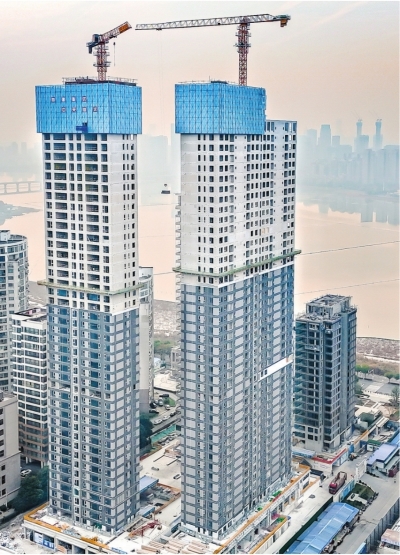 “项目共有5栋住宅,其中3号楼高140米,半数构件均在中天绿建基地里高精度、标准化生产,再运至现场高效率、低误差地组装。”中天建设集团有限公司第六建设公司(以下简称中天六建)项目执行经理康东旭说,相比于一砖一瓦现场施工,既减少用工成本,也实现绿色低碳,减少了15%的建筑垃圾。