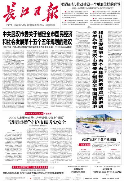 中共武汉市委十四届十二次全体会议认真学习贯彻党的二十届四中全会精神,深入贯彻落实习近平总书记考察湖北重要讲话精神,按照中共湖北省委十二届十一次全体会议部署,全面分析国际国内形势和事关武汉发展的重大问题,就制定全市国民经济和社会发展“十五五”规划提出以下建议。