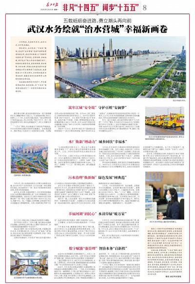 水润江城,宏图大展。“十五五”期间,面对新形势、新要求,全市水务工作将聚焦江河安澜的水安全保障体系、绿色集约的水资源配置体系、城水共生的水环境支撑体系、协同智慧的水务调度体系建设,全面实施防洪强基、治涝提能、节水减排、供水提质、污水增效、河湖善治、碧水营城、数智赋能等八大行动;依托水资源优势特色,擦亮城市“滨水”名片,努力建设人与自然和谐共生的世界滨水生态名城,为武汉在支点建设中当好龙头、走在前列提供坚实水务支撑。