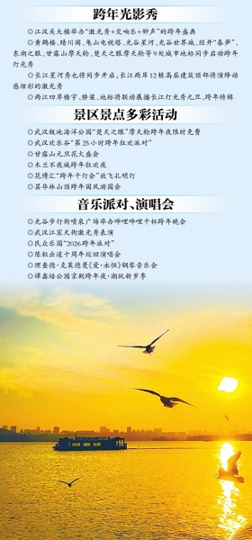 12月31日晚,武汉将举办“星光映万家——2026璀璨长江·武汉跨年光影秀活动”,点亮各大城市地标的倒数灯光,把跨年仪式感拉满。