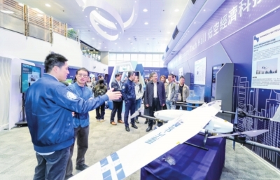 光谷企业代表参访香港生产力局低空经济科技馆展厅。