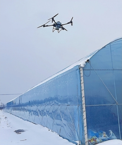 无人机正在为大棚除雪。