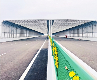3月19日,双柳长江大桥400米长的全封闭声屏障。