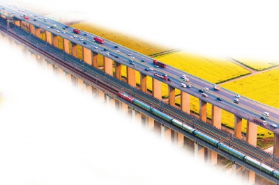 火车从武汉东站出发,途经南环东二联络线,视野一下子打开:天兴洲的油菜花田铺到江边,春天的黄能铺满半个视野。2小时车程里,列车两次跨过长江——第一次是天兴洲长江大桥,从这里看出去,江面更宽,货轮拖出一长条白浪,远处的二七长江大桥和高楼群叠在一起,城市的天际线在江面上拉得很长。第二次是武汉长江大桥,桥头堡的岗亭、龟山电视塔、汉阳树,像翻画册一样一页一页过。