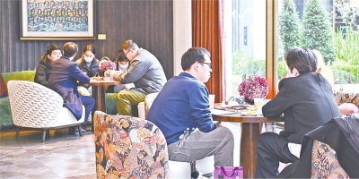 保利琅誉项目营销中心大厅洽谈区座无虚席。