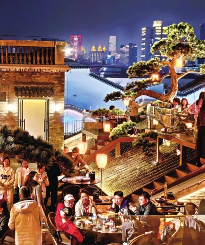 宝记松间火锅店营造出“明月松间照,长江万古流”的诗情画意。