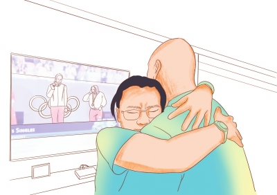 看到女儿在巴黎登上颁奖台的那一刻,站在电视机前观看直播的郑钦文父母跟女儿一起等待着国旗升起,在国歌响起的那一瞬间,郑钦文父母和女儿共同唱起了国歌,国旗升至最高处,父亲郑建坪看着电视机里的女儿高声喊出:“奥运会金牌!”母亲邓芳在这一刻趴在丈夫郑建坪的肩头,终于忍不住哭了起来。