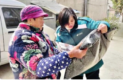 22日8:30,在黄陂区木兰乡塔耳邮政支局门口,黄芳兰麻利地将一捆报纸从副驾驶拿到后排座椅。正收拾着,一名骑着电动车的大爷老远就跟她打招呼,听到熟悉的声音,黄芳兰麻利地从车里拿出一袋春联笑着转头递给大爷,两人用一口地道的黄陂话交流寒暄。