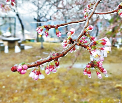 “由于今天气温一直比较低,加上有雨,整个景区都是大面积冰挂状态。除了樱花,其他植物也被冻住了。”清凉寨景区一位工作人员介绍,该景区有11万余株樱花树,其中很大部分早樱已经开放。“我们不知道持续低温对樱花会不会有影响,也不知道随后几天气温上升后冰挂是否会大面积融化。我们正在密切观察中。”