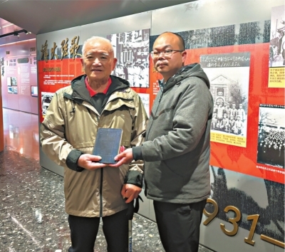 在校史馆内,孙厚元参观“校训、校徽、校歌”板块时回忆说:“参军当天,学校组织大家离开时,同学们高唱《共青团员之歌》。”说到动情处,他眼泛泪光,又一次唱起这首表达离别与战斗决心的歌曲:“再见吧,妈妈,别难过,莫悲伤,祝福我们一路平安吧!”