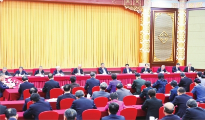 中共中央政治局常委、全国政协主席王沪宁,中共中央政治局常委、中央办公厅主任蔡奇参加看望和讨论。