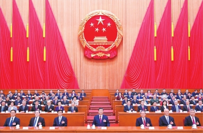 习近平、李强、王沪宁、蔡奇、丁薛祥、李希、韩正和大会主席团成员在主席台就座。