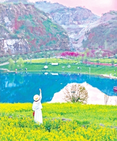 矿山上的油菜花海今年再添奇观。江夏灵山生态文化旅游区将350亩油菜花田与废弃矿坑巧妙结合,打造出“花瀑”景观。将于3月22日启幕的“春日花瀑·灵山有约”花瀑风动艺术节期间,游客不仅能观赏金色花海与银灰矿壁的视觉碰撞,还可参与野菜采摘、花田音乐会等特色活动。景区工作人员祝涵菲介绍,景区油菜花海的最佳观赏期预计在3月25日至4月10日期间,清明假期,景区将推出“灵境花仙秀”活动,上演花仙子主题巡游,身着绚丽服饰的花仙子们将穿梭于景区各处,与游客亲密互动。