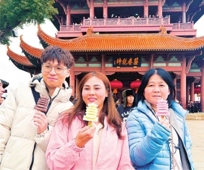 “好壮观!”3月15日下午2时30分,马来西亚百人赏花旅游团一进入黄鹤楼,就纷纷发出赞叹声。24岁的于峰和家人拿着不同颜色的黄鹤楼文创雪糕合影,他表示“非常开心”。来自马来西亚槟城的游客梁丽云表示,“第一次来黄鹤楼,觉得很壮观、很漂亮”。游客欧阳汶键不仅购买了黄鹤楼文创雪糕,还购买了AR卡片,扫进去后感受全景黄鹤楼、了解相关历史文化。