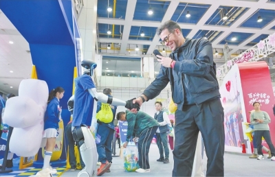 3月20日,在武汉国际会展中心,2025武汉马拉松迎来了首个参赛选手报到领物日。现场人形机器人志愿者吸引了众人的目光,机器人志愿者不时向大家挥手,选手则纷纷与其互动拍照。