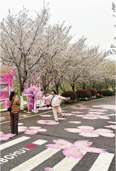 工作人员介绍,景区盛放的是中樱,晚樱还没有开放。风雨过后还能欣赏到部分中樱,晚樱会迎来盛花期。“经过雨水的滋润,晚樱应该会比往年开得更好。”