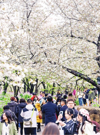 王泽明表示,现在盛开的是中樱,预计仍能维持观赏期7天左右。接下来,晚樱也会开始陆续开放。“即使遭遇寒潮影响,游客至少还能看半个月的樱花。”