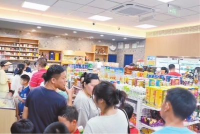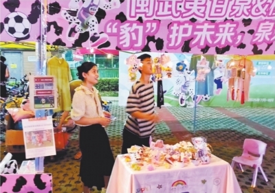 场内比赛精彩纷呈,场外同样热闹非凡。12号球场对面的中百罗森超市排起了两条长长的队伍,烤肠、各种矿泉水、饮料成了孩子们的最爱。11号球场门口,由“晚报杯”赞助商搭建的小市集被家长和孩子围了一层又一层,闽武夷圣泉、统一海之言提供的饮料和矿泉水供不应求,德韩口腔、麦当劳等市集前也人流不断。