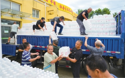 不到一小时,有四辆载有救灾物资的车辆抵达安置点。午餐时,一对夫妇边吃着热乎饭边说:“这辈子只在电视里见过这么大的洪水,感谢救援人员!”