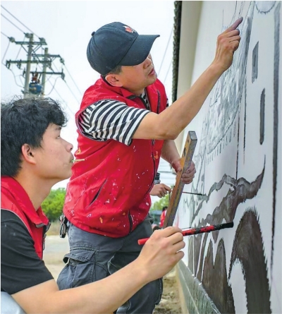 近日,武汉市第一聋哑学校教师甘云山带着6名学生来到黄陂区北新村,为村民们义务绘制墙画。师生们顶着烈日连续画了三天,完成了《西游记》《哪吒》等主题墙画,将村里原本单调的墙面扮靓。