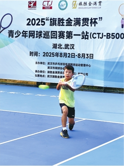 8月2日一大早,参加“旗胜金满贯杯”青少年网球巡回赛的少年们正在武汉市体校内的网球场上捉对厮杀。场外,队友和家长不停地为他们加油呐喊。