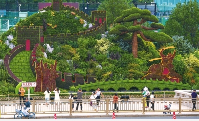 据悉,此次主题花坛应用新优品种和乡土植物100余种,其中40个新品种首次亮相。花坛景观将延续至今年国庆。