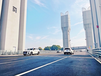 右岸大道开启桥现场。