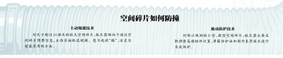 事实上,所有航天器都可采用屏蔽防护结构来对付0.1—1厘米的碎片,但要对付1—10厘米的碎片则需通过特殊设计来实现。目前,我国航天员乘组已为“天宫”安装了多个空间碎片防护装置,它能抵御个头不足1厘米、很难被监测到的巨量微小碎片。
