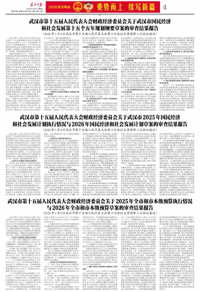 武汉市第十五届人民代表大会财政经济委员会关于武汉市2025年国民经济 和社会发展计划执行情况与2026年国民经济和社会发展计划草案的审查结果报告