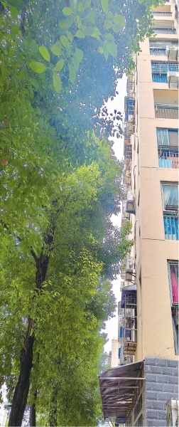 “小区4栋前的树大多有6层楼那么高,5楼及以下住户家中目前整天见不到阳光,晾晒衣服很成问题。而且,大树距离楼栋仅2米左右,好多树枝都长到防盗网里面了。夏天的时候,大家都不敢开窗,影响通风,蚊虫也多。”李女士告诉记者,虽然物业公司定期修剪,但树木生长速度太快,效果甚微。她建议,物业公司修剪树枝时多修剪一些,这样可以多管一段时间。