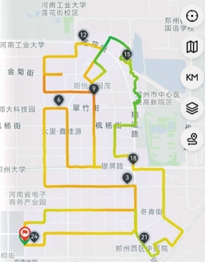 周勇介绍,“奔马线”全程设计长度约26公里,因为遇到施工绕路,他实际跑了29公里。中山路和沿江大道部分路线很有特色,连接了多个热门打卡点与人文景观,很适合跑者去欣赏与体验。此外,这条路线的安全系数也比较高,沿途补给也较为方便,跑友们在劳累时也可以随时停下买水或休息。当然,由于路线中城市道路占比较大,车辆、行人较多,跑友们在跑步过程中仍旧需要注意安全。