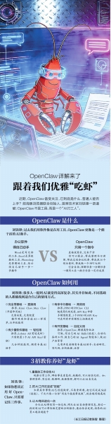 他们吃的“龙虾”是进口的,英文名是OpenClaw,直译为“开源的钳子”,官网上介绍它是“真正能做事的人工智能”,因其标识样式而被大家昵称“龙虾”。在2026年全国两会热议“人工智能+”的春天,这只“龙虾”从硅谷火到中国。在光谷,它热得好快。