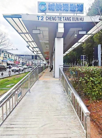近日,记者再次来到汤逊湖站。这回站台东侧完全变了样:曾经封闭的护栏被一个宽约一米的崭新斜坡取代,斜坡两侧装上了锃亮的金属扶手,和站台连成一体。市民进出站时,顺着斜坡上下,再也不用绕远路。